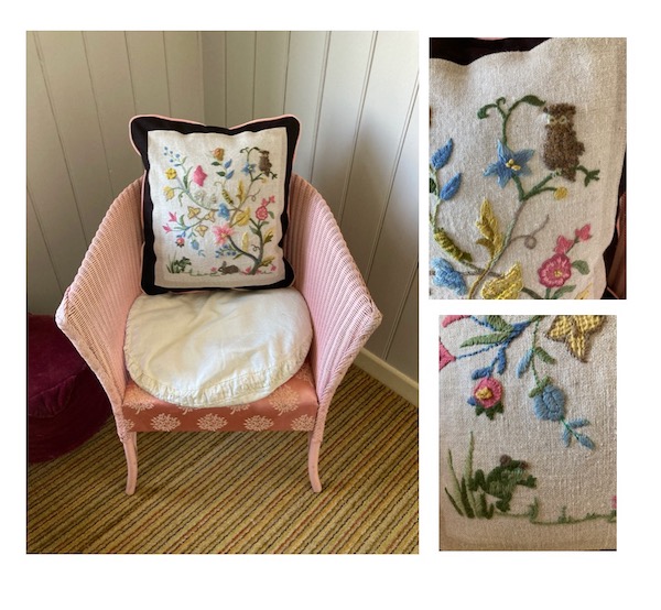 I have mounted and backed it with a vintage French cotton canvas and piped it with a pink cotton twill.