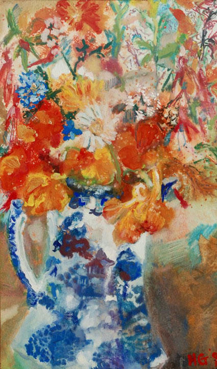 Flowers in the blue and white vase