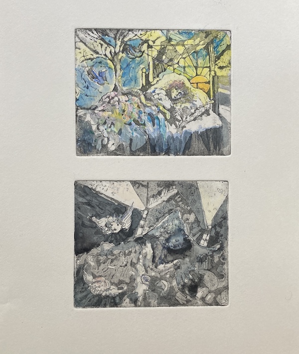 A hand-coloured diptych etching on Fabriano Unica paper …Good Morning/Good Night (Tree of Life)