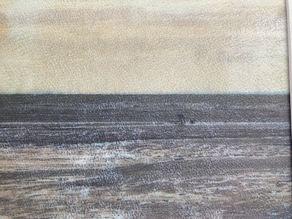 A transfer print of the bay at Dungeness at low tide, in the near monotone of the early morning light.